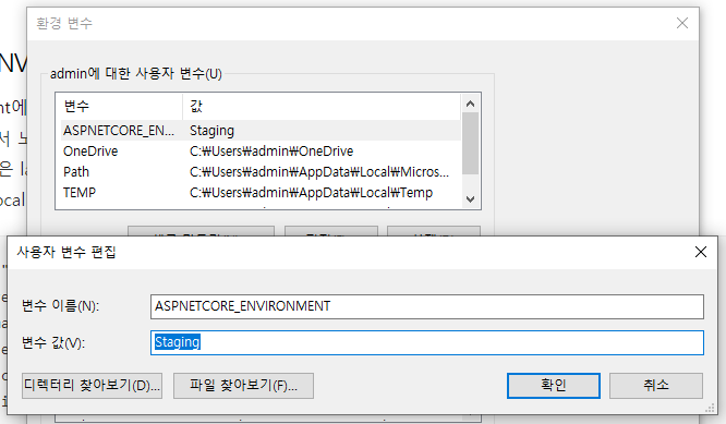 launchSettings.json의 환경변수는 시스템 환경변수를 재정의한다.