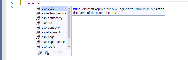 asp-action과 asp-controller는 Form Tag Helper의 attribute이다.