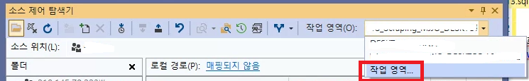 추가하기 위해서 소스제어탐색기 > 작업영역 > 작업 영역... 클릭