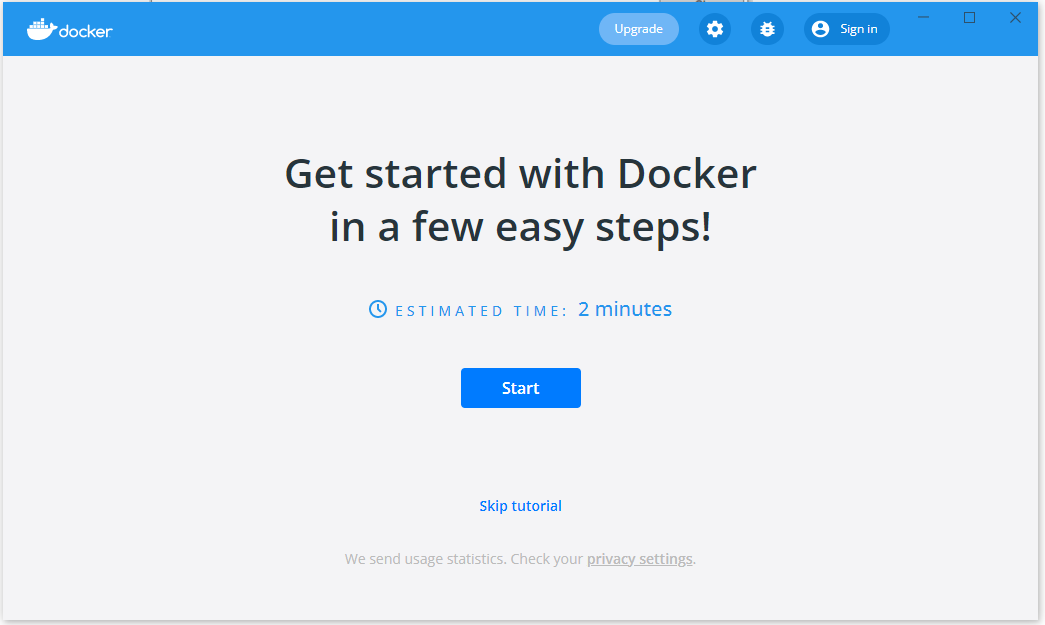 Docker를 실행하면 아래와 같이 Quick Start Guide 화면이 나온다.