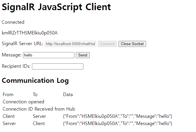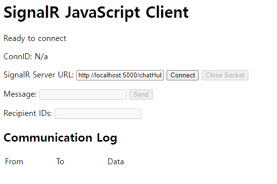 - signalRClient.html 파일 브라우저에서 열기