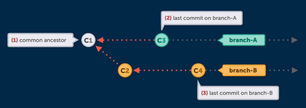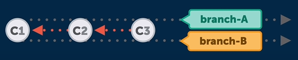 - Step 1 : git은 C1 이후의 branch-A의 모든 commits을 삭제하고, 임시보관한다.
