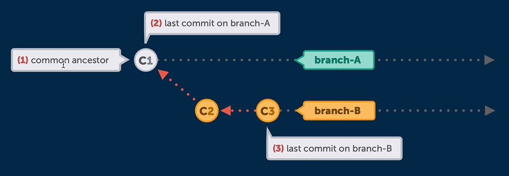 Merge에는 위와 같이, 3가지 commits이 관련되어 있다. 이 3 commits을 합쳐야 한다.