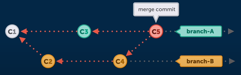 branch A와 B에 서로 다른 commit이 존재하는 경우, merge commit을 해야한다.