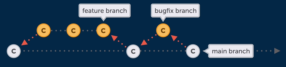 1) GitHub Flow : only one long-running branch (main) + featuer branches