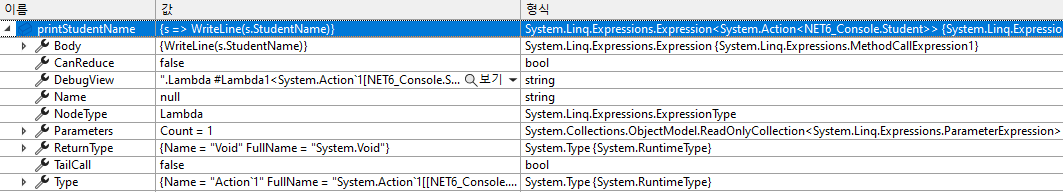 expresstion node의 ExpressionType은 System.Linq.Expressions.ExpressionType enum으로 종류를 확인할 수 있다.