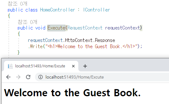 IController Interface는 RequestContext object를 받는 Excute 함수만 정의한다.