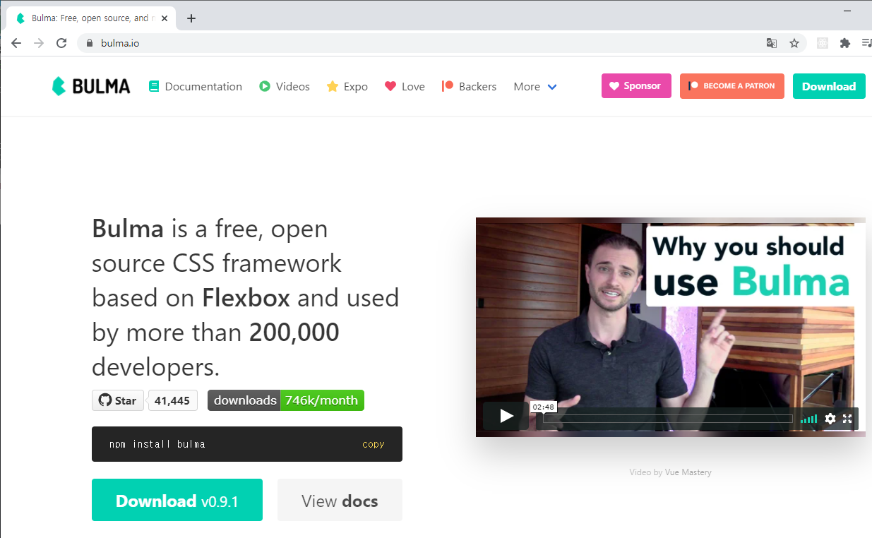 다음 터미널 command로 Bulma CSS framework를 추가한다.