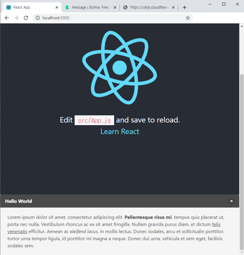 TAG를 COPY해서 App.js render()안에 추가해보자.