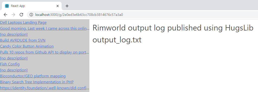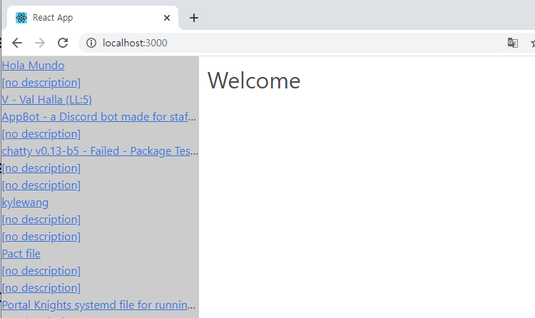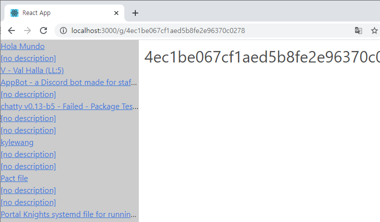 output : 링크를 클릭 시, 우측 화면에 해당 git의 description과 file리스트가 보여진다.