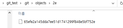2e65efe2a145dda7ee51d1741299f848e5bf752e : object name(object 폴더의 2e폴더 하위에 65efe2a145dda7ee51d1741299f848e5bf752e 파일을 가리킨다.)