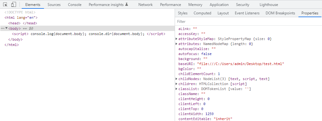 alert( document.body.constructor.name ); // HTMLBodyElement