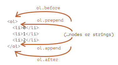 ol.before('before'); // insert string "before" before <ol>