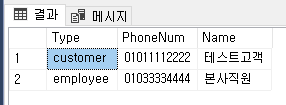 3. 'customer,01011112222,테스트고객|employee,01033334444,본사직원'
