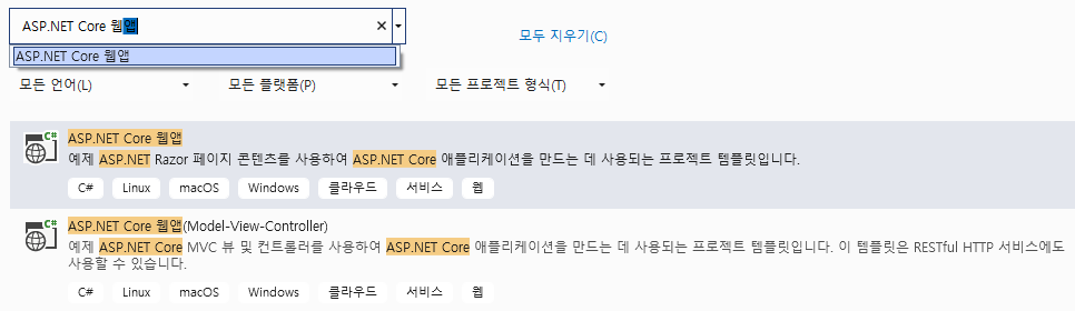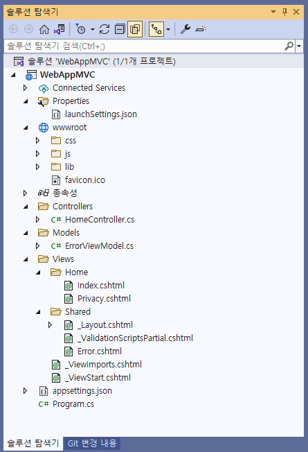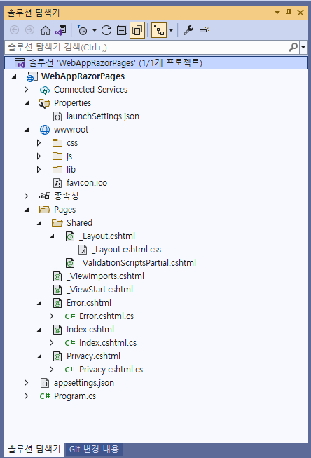 MVC와 Razor Pages의 기본 템플릿 구조를 살펴보자.