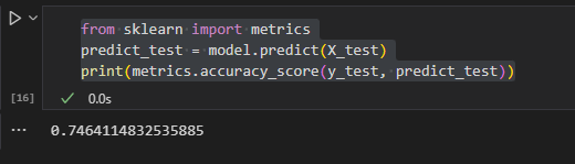 훈련된 알고리즘은 생존예측에 약 75%의 성공률을 갖는다.
