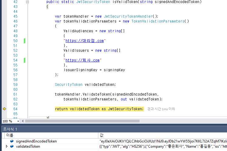 string token = clsJWT.createToken("좋은회사", "홍길동");