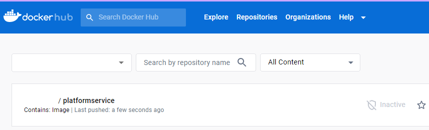 The push refers to repository [docker.io/<docker hub id>/platformservice]