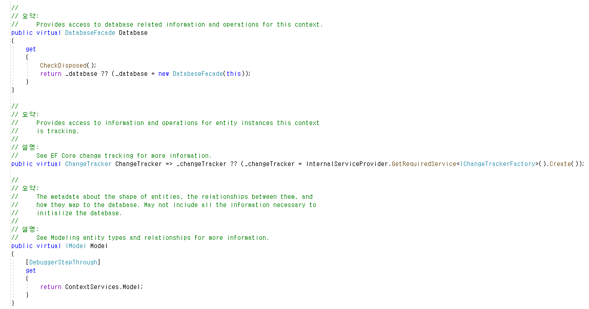 DbContext class definition에는 아래 세가지 properties가 있다.