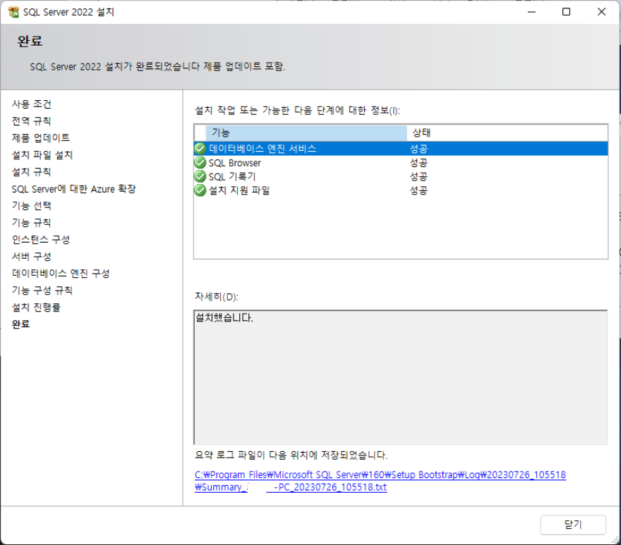 설치가 완료되었다.