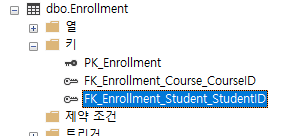 - Enrollment 테이블의 외래키 제약조건을 삭제한다.