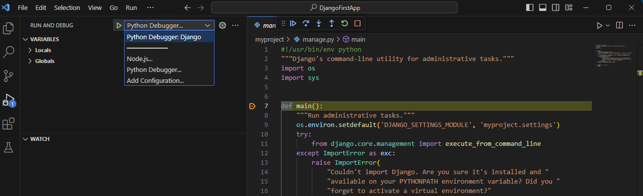 (DjangoFirstAppVenv) PS C:\Project\DjangoFirstApp> python .\myproject\manage.py runserver