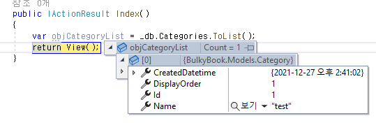_db.Categories.ToList(); db에 접근 후 원하는 DbSet을 선택하고 ToList()를 하면 모든 레코드들이 list형태로 반환된다.