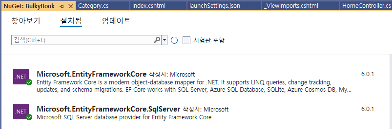 3. DBContext 설정, Entity Framework Core, SqlServer Package 설치
