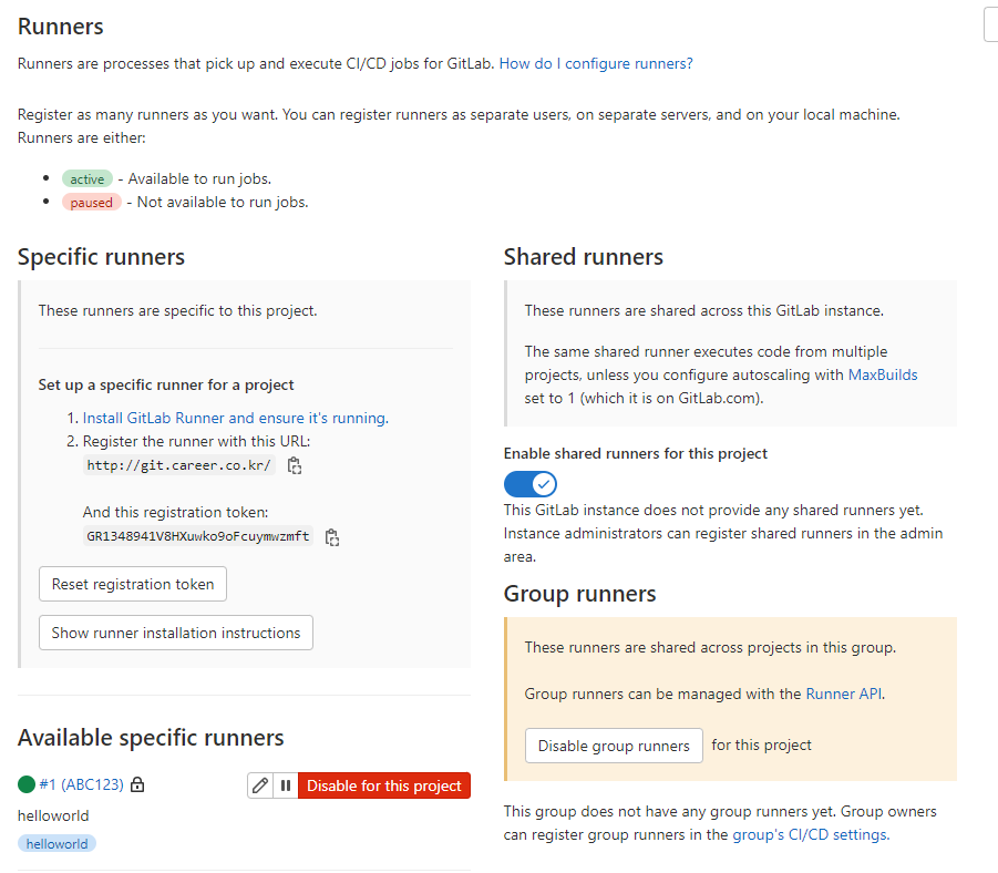 - Shared Runner : GitLab instance의 모든 project에서 사용 가능하다.