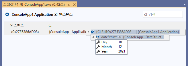 class instance는 heap에 저장되었고, int값도 class instance와 함께 heap에 저장된 것을 확인할 수 있다.